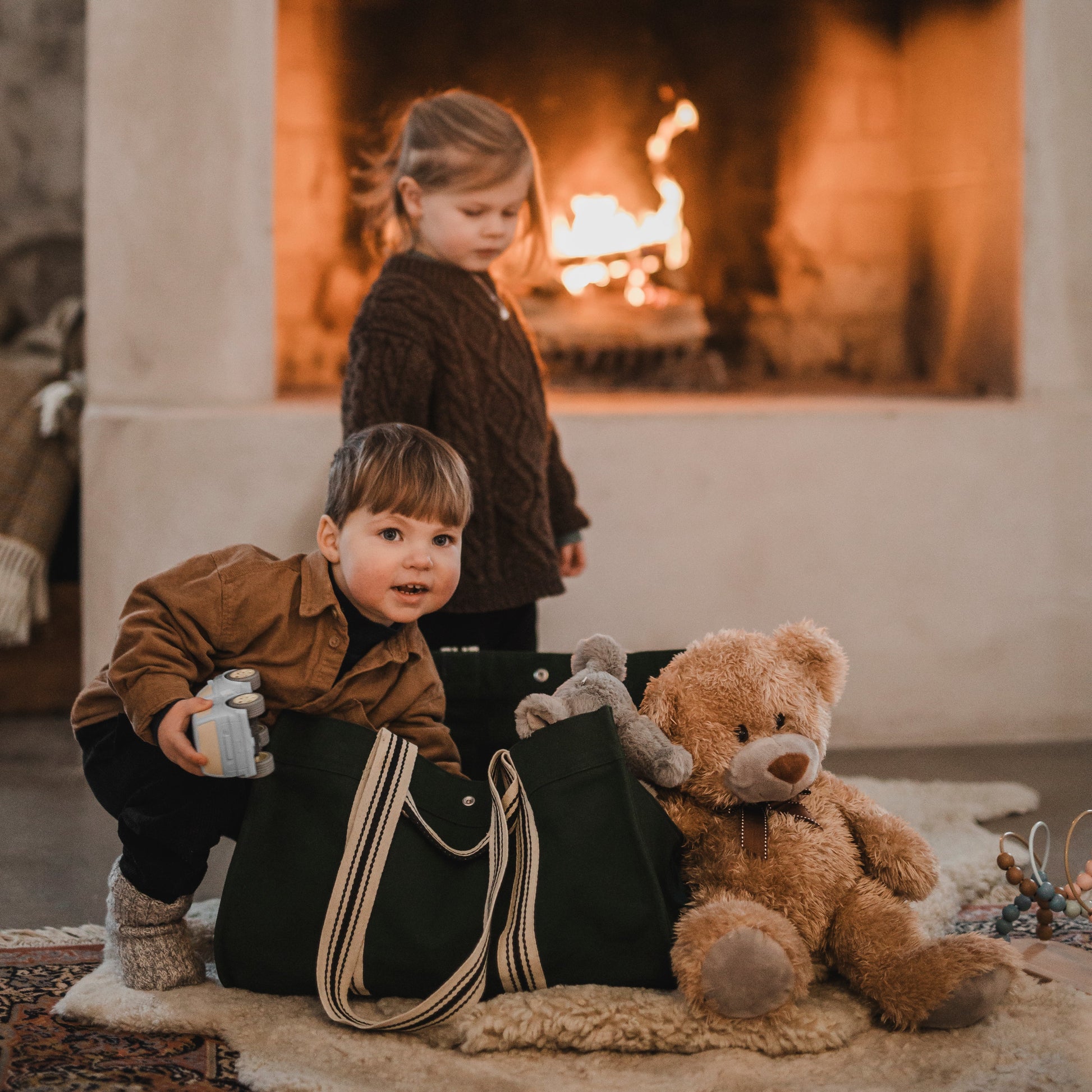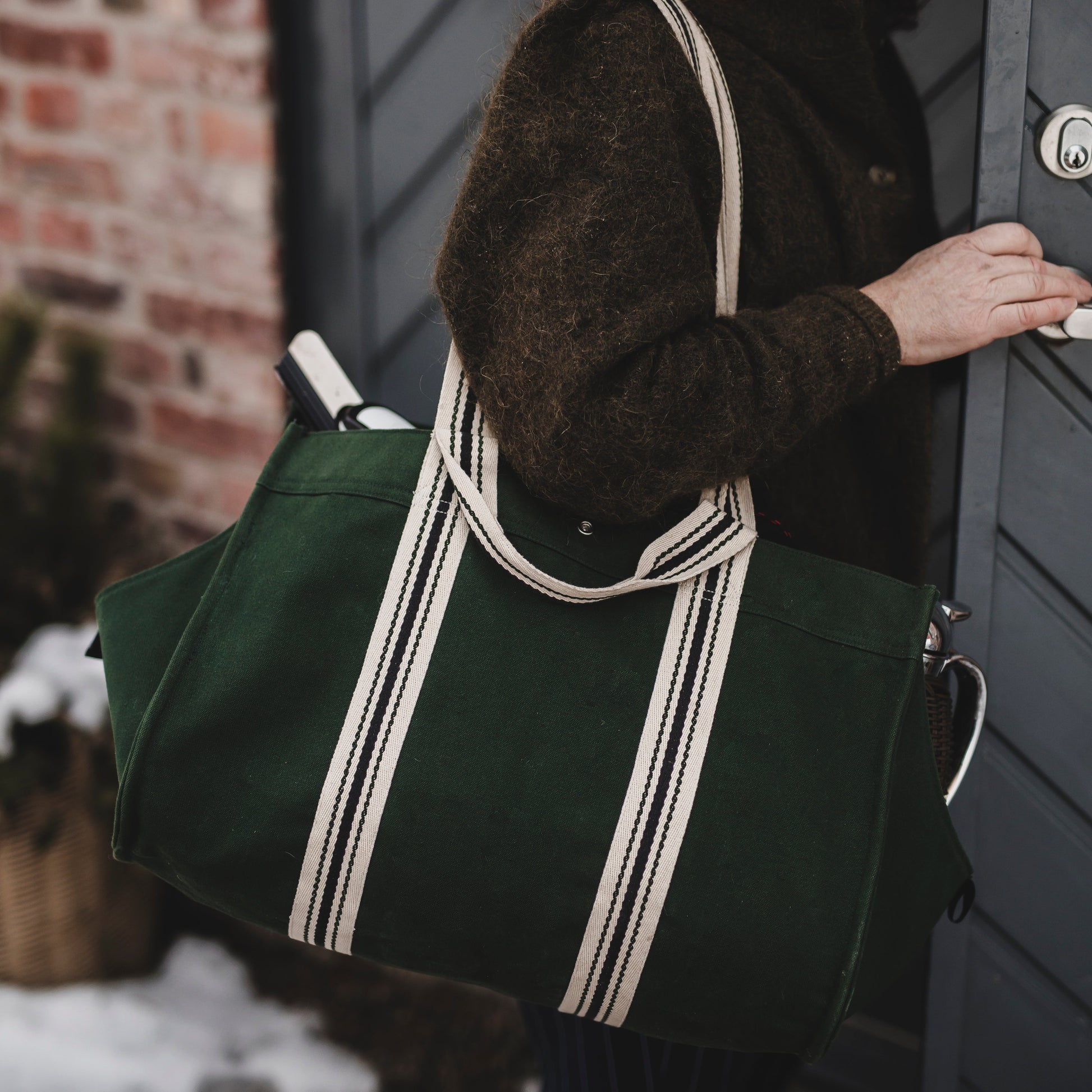Bergslagsväskan - the versatile log carrier is a durable bag made from heavy-duty canvas, designed to last over time. The reinforced construction allows the bag to stand upright on its own, and together with the cleverly lowered side, it makes it easy to load and unload items without anything falling out. At the same time, the shape keeps everything securely in place while you’re on the move.