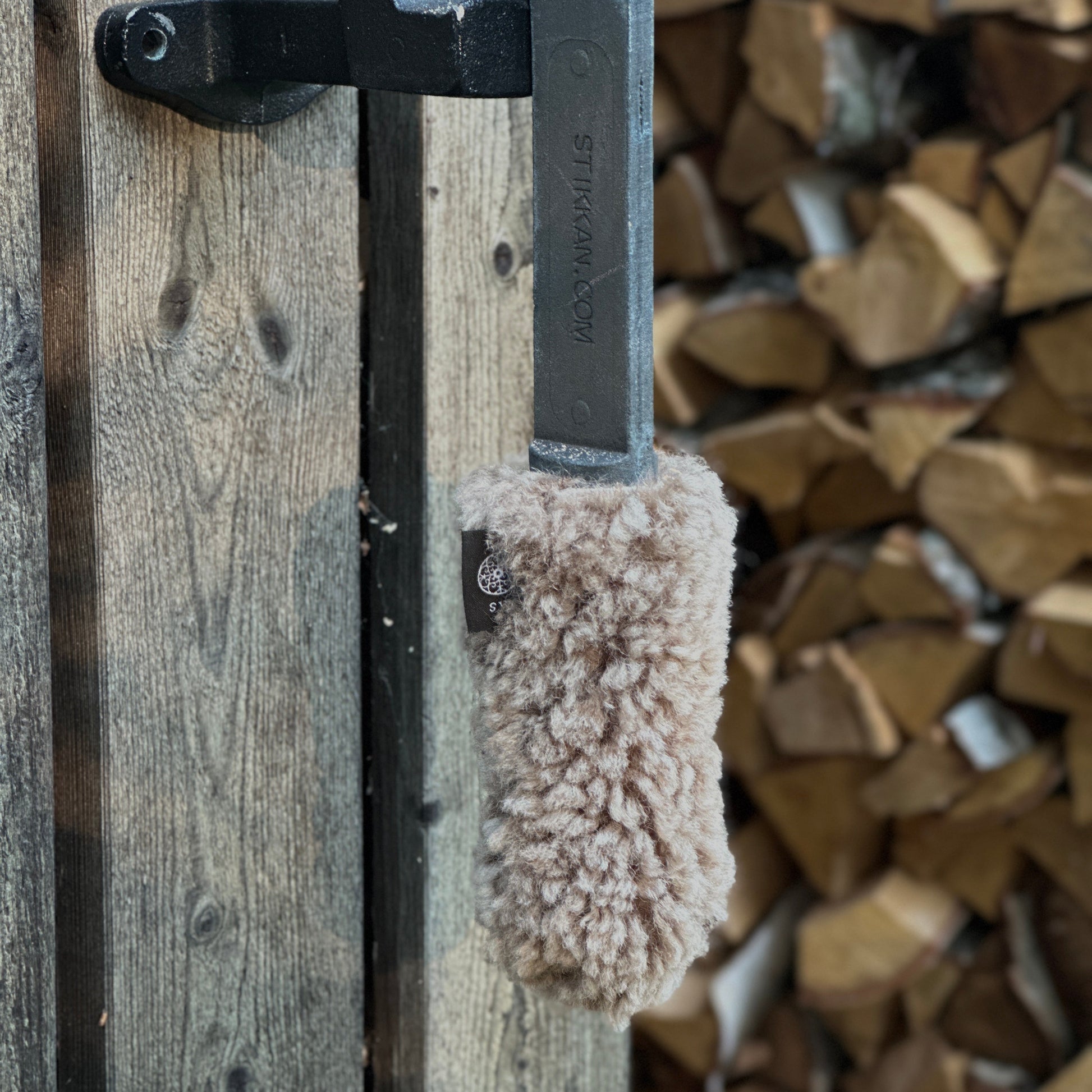 Detta paket innehåller Stikkan® - vår klassiska vedspänt i gjutjärn, och Fluffen – ett handtag i mjukt fårskinn för extra komfort.
